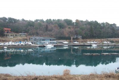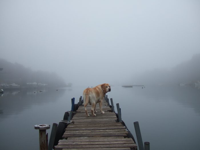 今朝は霧がこくて、桟橋がどこまでも続くように見えます。