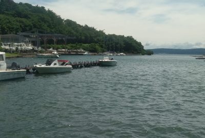 係長とお向かいのマリーナさんにおじゃまして、対岸から1枚。