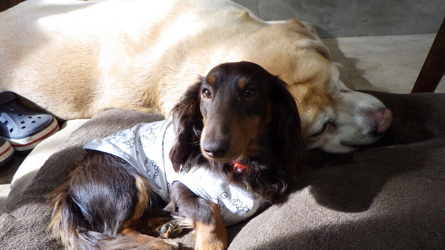 只今べた凪 2021年5月5日 TSUBAKIZAKI椿崎日和 お昼すぎに雨がやんで、天気はあいにくの曇りですが、 ふと海を見ると見事なべた凪です。 周りの景色が水面にキレイに映って見えるほど波がなく まるで湖のようでした。 桟橋の周りにはかわいいお魚たちが沢山泳いで 気持ちよさそうです。 最後に新顔のご紹介(≧▽≦) 気持ちよさそうに寝ている係長にくっついているのは チャルくんです。まだ役職は決まっていません。 教育途中のやんちゃ坊主で、要注意です! 末永く気長にお願い致します。 あなたにオススメの記事干潮大雨です遅ればせながら夏休みをとります。あいにくの雨輪島の花火大会