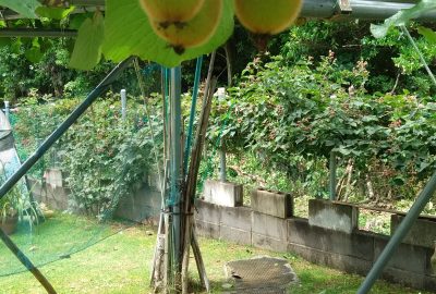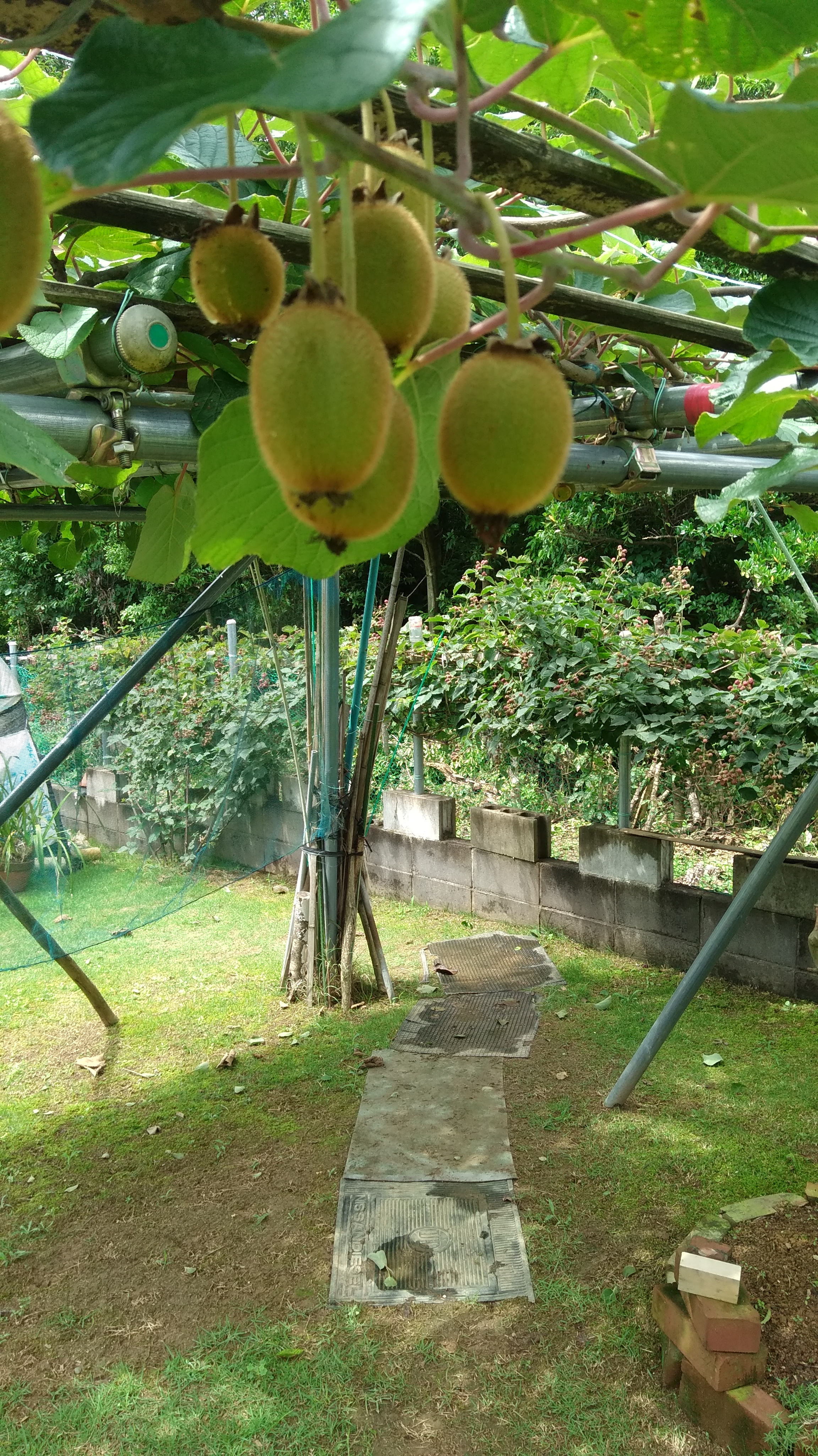 キウィは、今年初めて実をつけたそうです。かわいらしい実がブラ♪ブラ♪