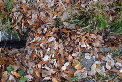 そしてその落ち葉があちこちで水路を詰まらせ取れども