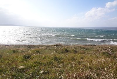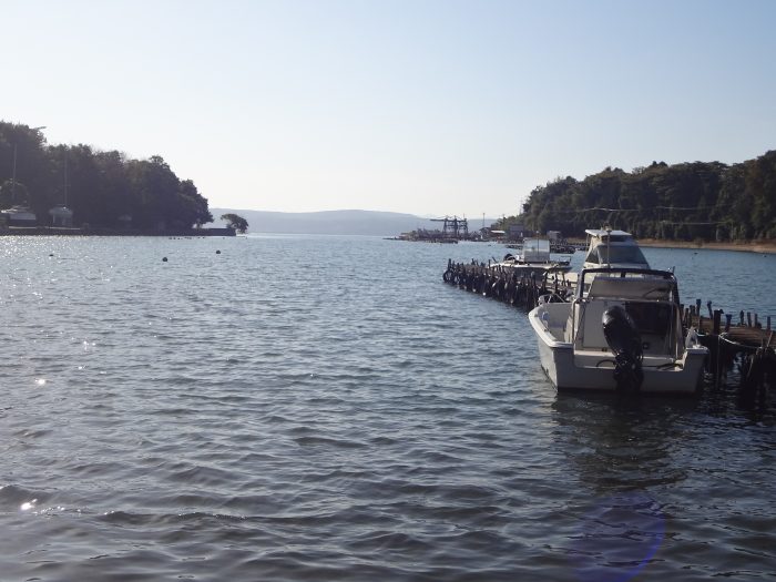 普段は周りの景色が映りこむ穏やかな湾内も荒れ気味。
