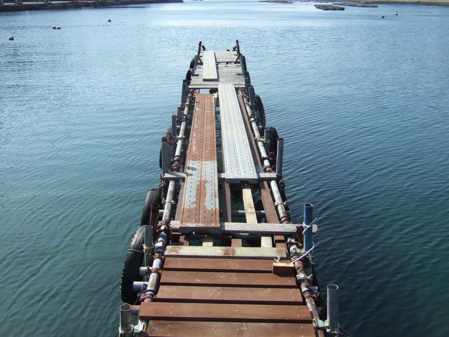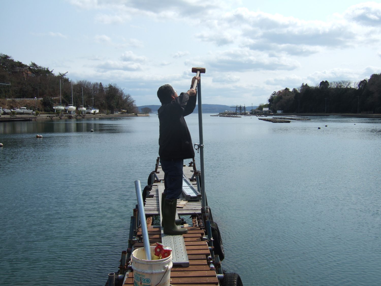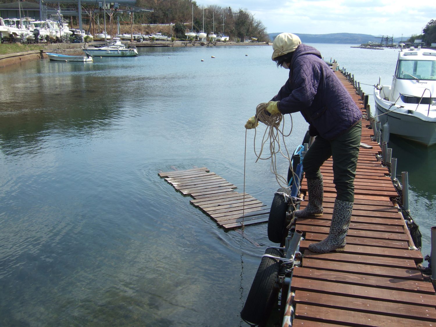 桟橋改修工事 Part4 2020年4月2日2020年4月2日 TSUBAKIZAKI椿崎日和 昨日と今日の午前は雨が降っていましたが、ようやく午後から晴れてきました。 係長も日光浴です(^_^) さて桟橋ですが、またキシラーを塗って、 単管を打ち込み、 外した桟橋を岸までひっぱり、 なんだかんだで、ようやくここまできました(^O^)/ 振り返ると・・・完成まで後少し(^_^) 輪島の姉さんが、事務所裏の海で「あおさ、とらせて~」って(*^-^*) そういえば、食べれそうな海藻がユラユラゆれているなぁーって。 あおさだったんですね。 よーーく、洗って干さなきゃダメって言ってました。 本日のおやつ!社長が金沢へ出張だったので、ミスドーを買ってきてくれました(^^♪ 久しぶりだな~。クンクン。 あなたにオススメの記事4月 みゆき先生のヨガレッスン干潮遅ればせながら夏休みをとります。大雨です輪島の花火大会