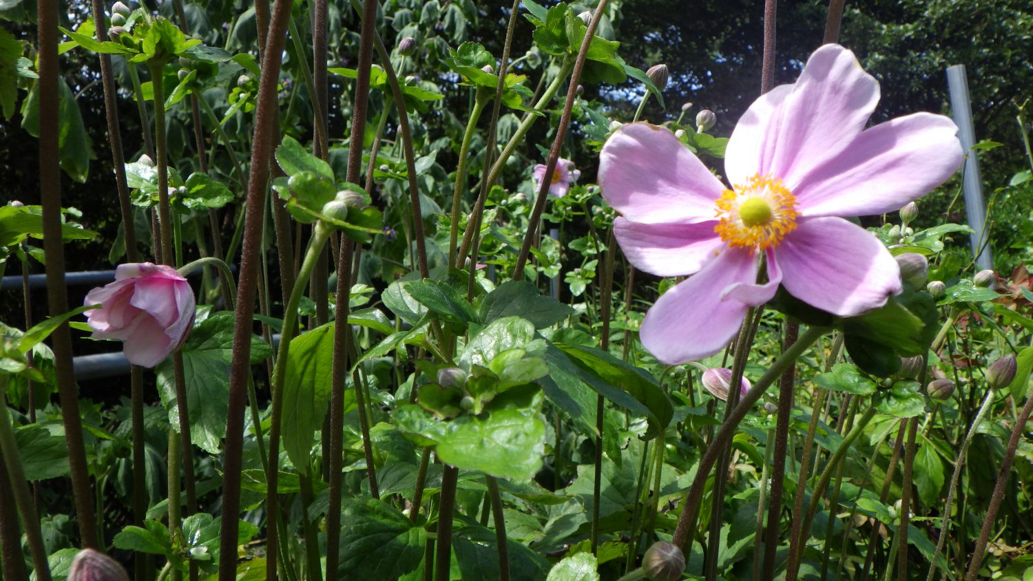 周辺を見ると秋の花が咲き、色んな実がなっています。
