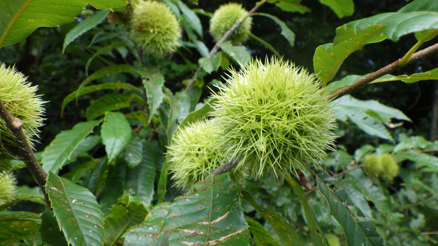 あっちこっちに山栗が身を付け始めていて食べる事を