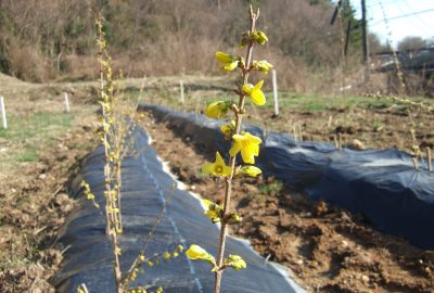 この前、I先生が植えて下さったレンギョの花も咲きました。