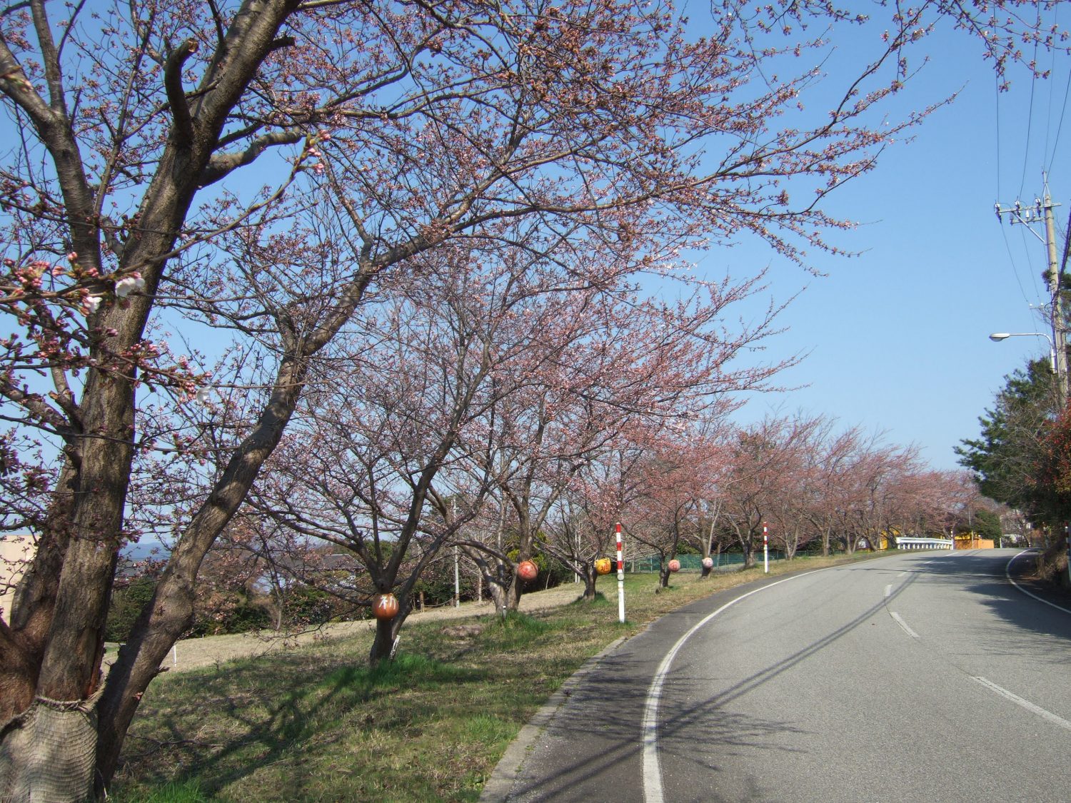 別荘地内の桜通りはつぼみが膨らみ、少し色づいてきました。