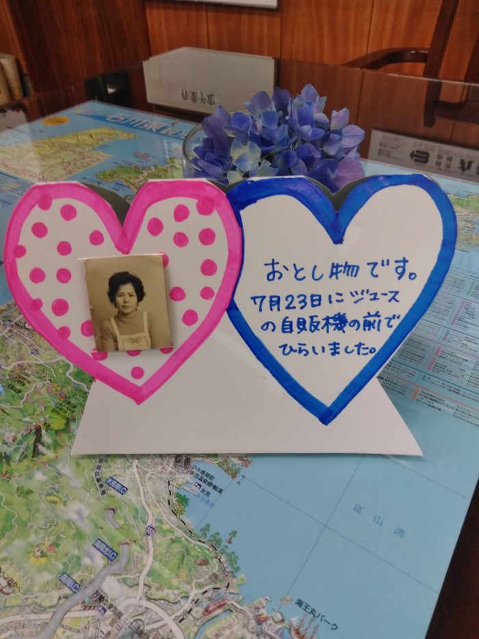 落とし物です。 2020年7月24日2020年7月24日 TSUBAKIZAKI椿崎日和 事務所前にある自販機の側で落ちていました。 写真の裏にはS.48.12.5 36才と書いてありました。 ということは・・・47年前ですね。今は83才かな。 ジュースを買うのにお財布をだして・・とか、いろいろ妄想しました。 もしかしたら、とても大切な写真かもしれません。 お心当たりのある方は事務所までご連絡下さい<m(__)m> お待ちしております。 あなたにオススメの記事今日の係長海よ~♪俺の海よ~♪アジ、大きい~✨涼しくなってきましたね(^^♪久しぶりに係長とお散歩へ♪