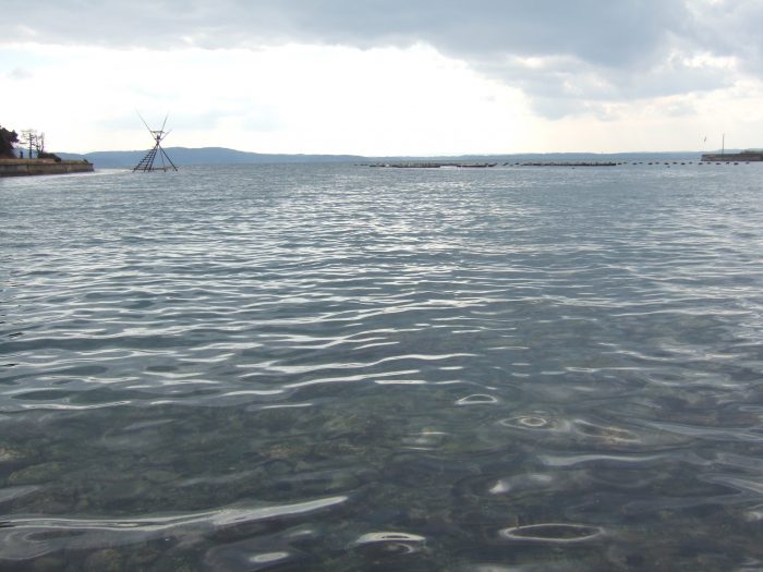 海に降りる石段からの「ボラ待ち櫓」のアングルいいわ、