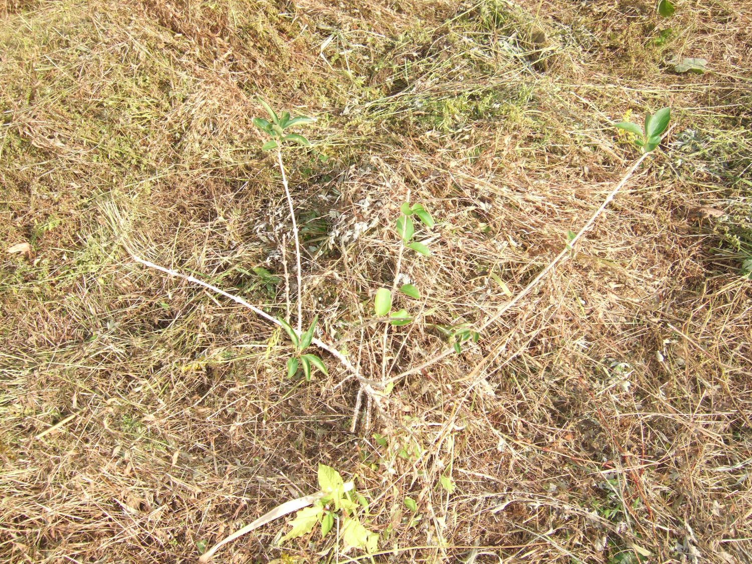 草を刈ってもらったら、11本のレンギョが生き残っていました。