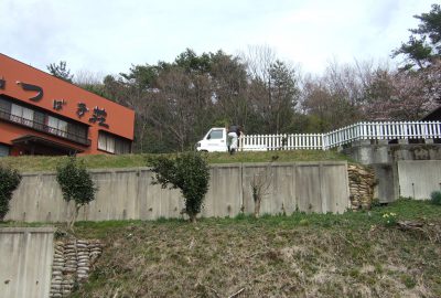 順番に柵を設置して行きます。今まで、落っこちた人はいませんでしたが、