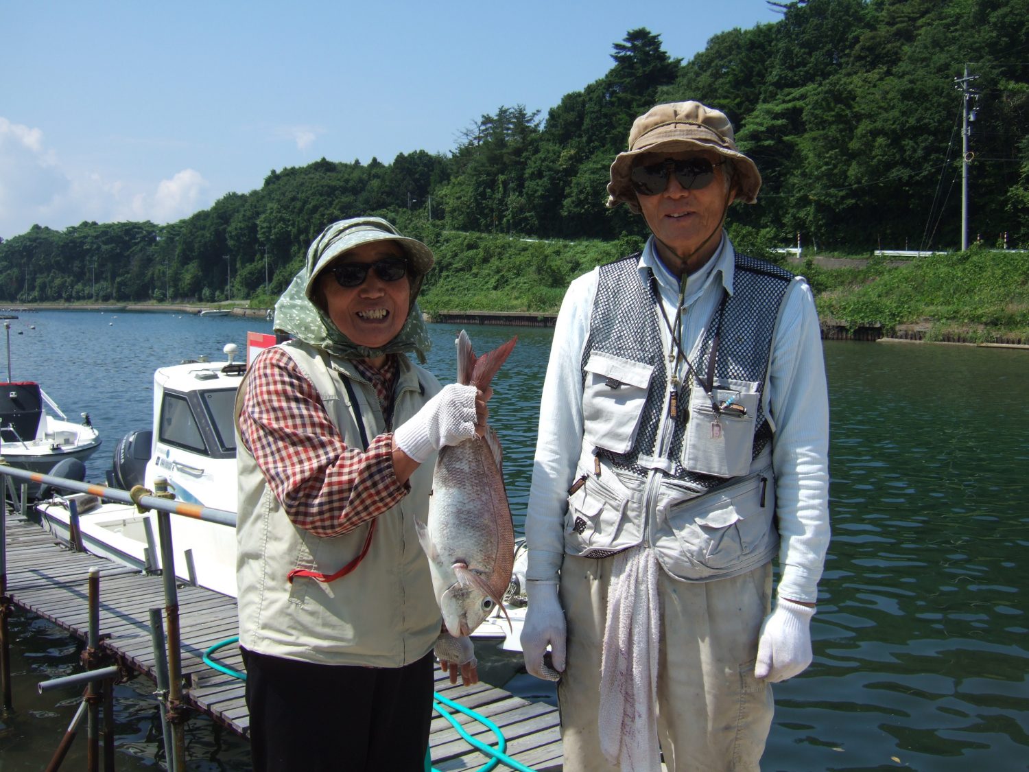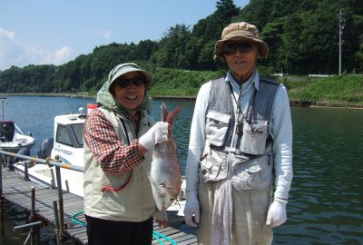 今朝、釣りに出航したKご夫妻。アジ釣り用の竿に真鯛が!