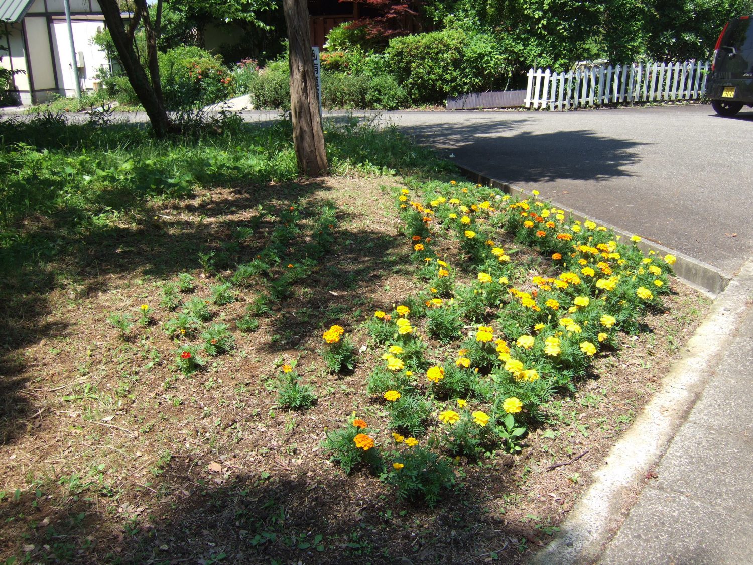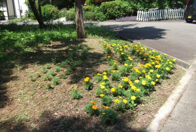 県道沿いにある花壇です。別荘の方が草をとり、耕して植えて下さいました。