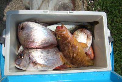 恥ずかしがり屋のOさんの本日の釣果です!鯛が大きい!(^^)!