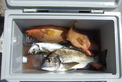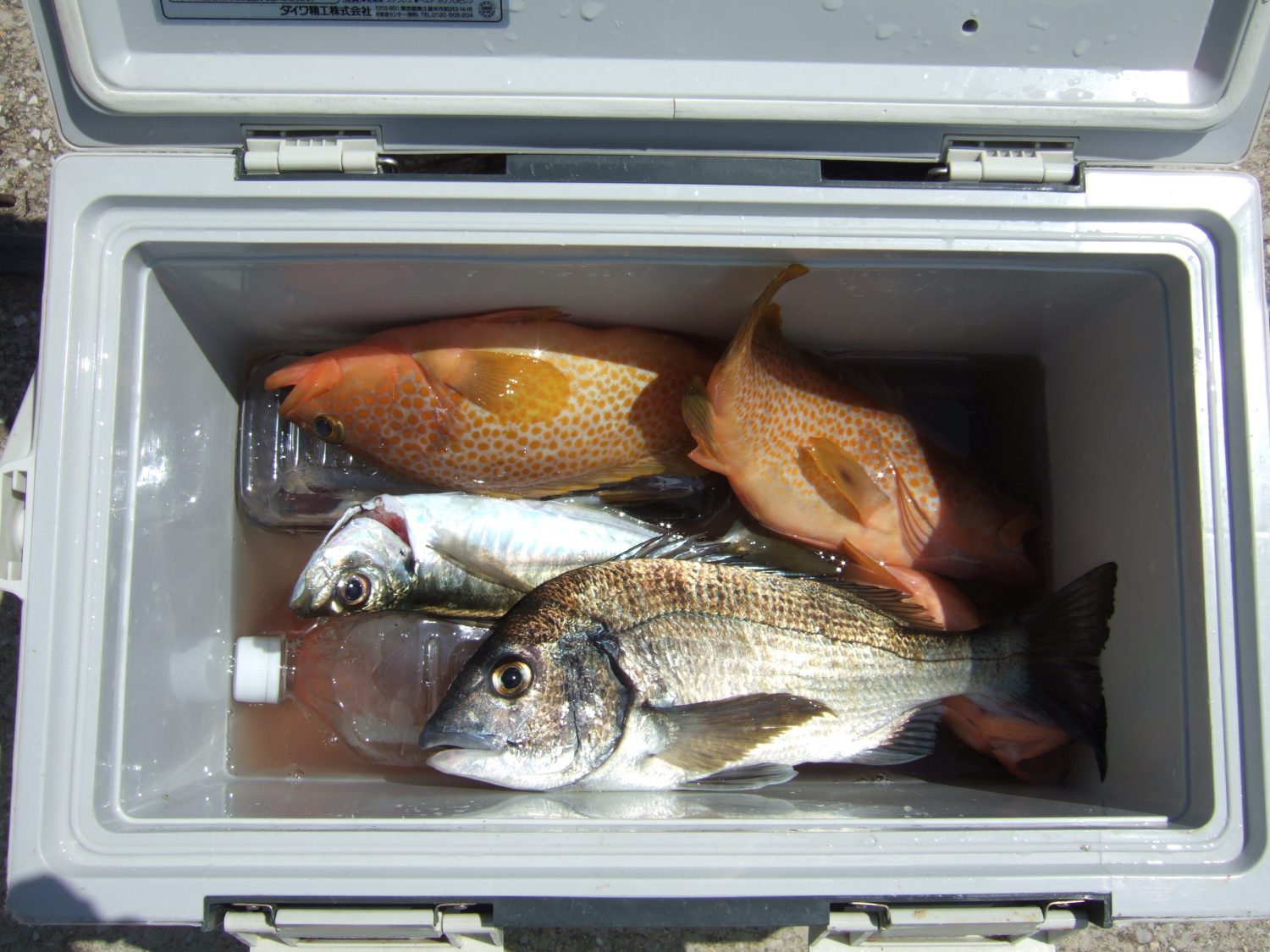 本日のSちゃんの釣果です!クロダイ、ナメラ、アジ。美味しそうです!