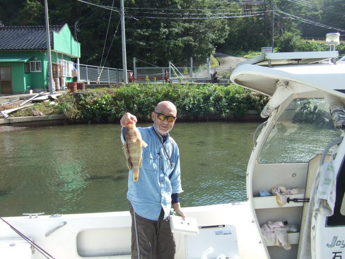 写真を撮らせてとお願いすると、キジハタをもってポーズしてくれました。