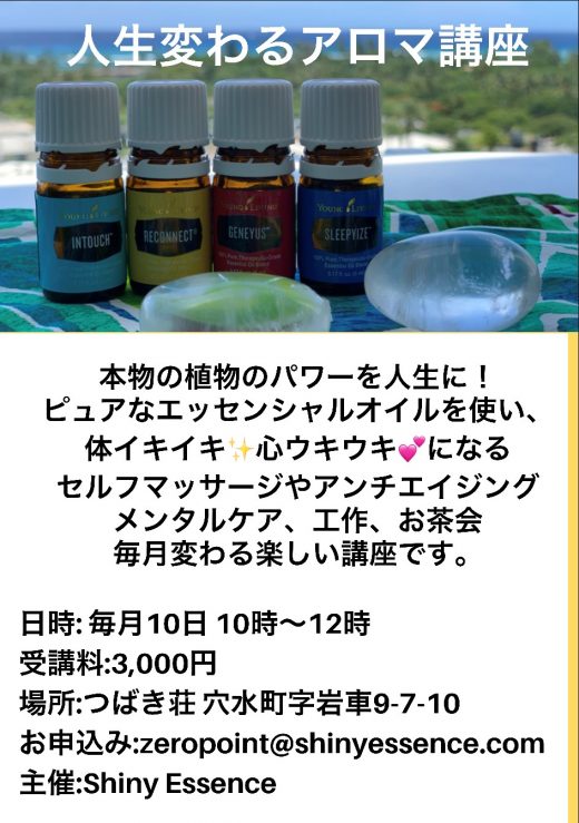 Shiny Essence さん主催 毎月10日に開催 2019年12月5日2019年12月13日 TSUBAKIZAKIお知らせ つばき荘にて、毎月10日 Shiny Essence さん主催の 「人生変わるア […] Read more